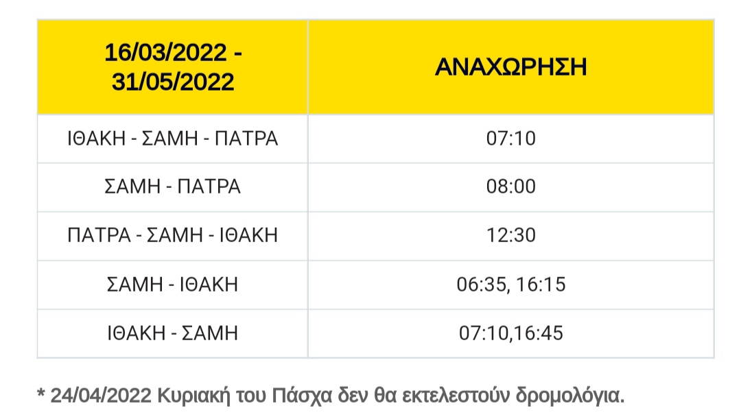 Συγκεκριμένα, το πλοίο θα αναχωρεί καθημερινά από το λιμάνι της Σάμης στις 08:00 το πρωί με προορισμό την Πάτρα, ενώ το αντίστροφο δρομολόγιο θα ξεκινά από την Αχαϊκή πρωτεύουσα στις 12:30 το μεσημέρι.