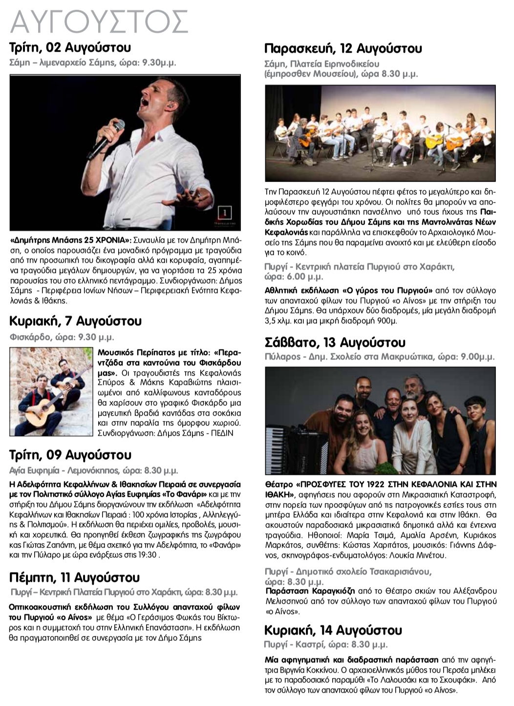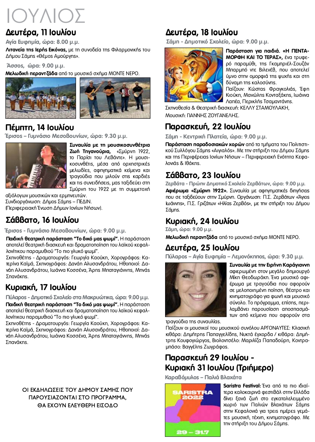 ΑρχικήΑνακοινώσειςΤο πρόγραμμα των καλοκαιρινών πολιτιστικών εκδηλώσεων στο Δήμο Σάμης
