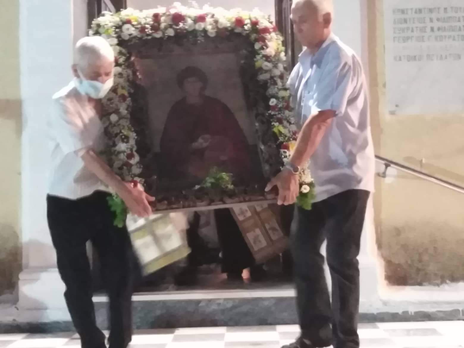 Μετά το πέρας της Θείας Λειτουργίας, πραγματοποιήθηκε περιφορά της Ιερής Εικόνας του Αγίου στον κεντρικό δρόμο του χωριού μας και μοιράστηκαν σε όλους τους πιστούς άρτος και κόλυβα, όπως επιτάσσει το εκκλησιαστικό τυπικό.