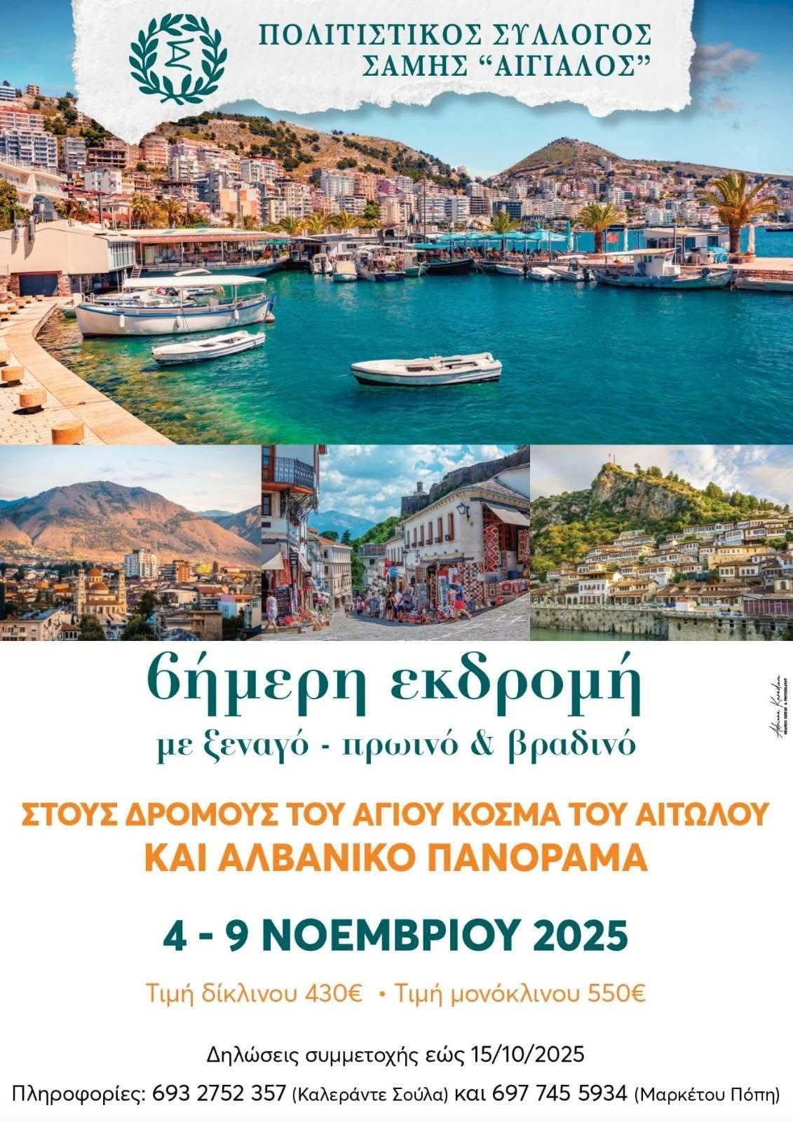 Εκδρομή στην Αλβανία με τον Πολιτιστικό Σύλλογο Σάμης «Ο Αιγιαλός»! Έξι ημέρες περιήγησης στις πόλεις της γειτονικής μας Αλβανίας.