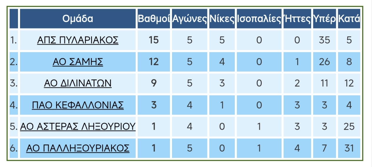 Το Σάββατο πραγματοποιήθηκε και το ντέρμπι κορυφής του πρωταθλήματος Κ16, με τον Πυλαριακό να επικρατεί στα Μακρυώτικα της Σάμης με 3-1 και να αναδεικνύεται πρωταθλητής χειμώνα.