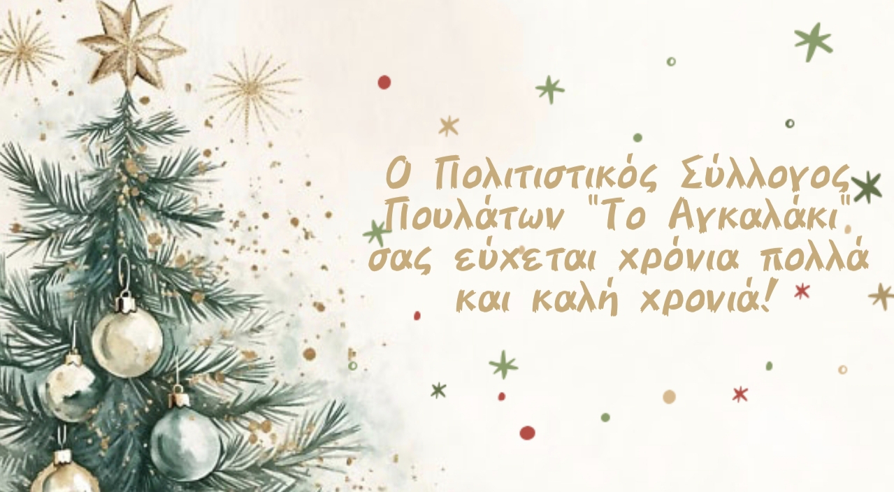 Το Διοικητικό Συμβούλιο του Πολιτιστικού Συλλόγου Πουλάτων «Το Αγκαλάκι» σας εύχεται ολόψυχα χρόνια πολλά και καλή χρονιά με υγεία, ευτυχία και προκοπή!