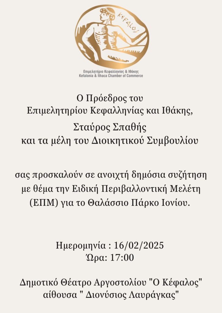 Επιμελητήριο Κεφαλονιάς & Ιθάκης: Πρόσκληση σε ημερίδα για το Θαλάσσιο Πάρκο Ιονίου