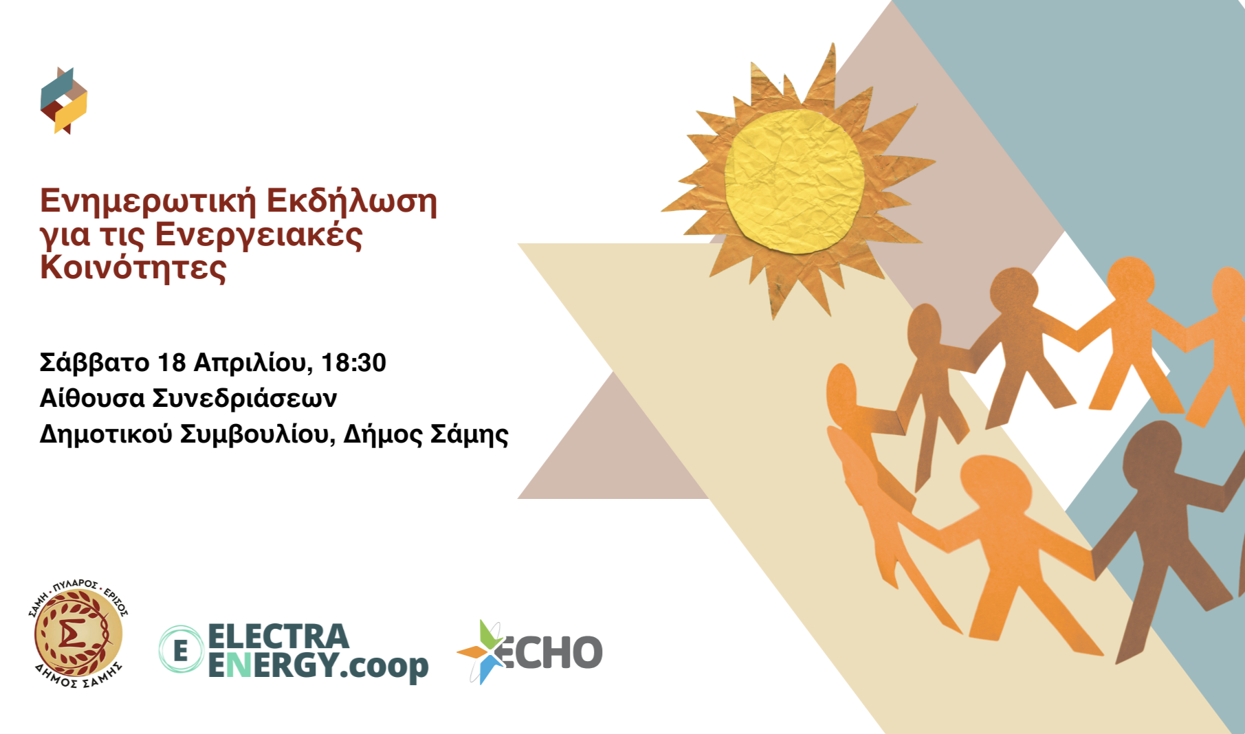 Η Σάμη κάνει το πρώτο βήμα στην κοινοτική ενέργεια! Ο Δήμος Σάμης σας προσκαλεί στην πρώτη ανοιχτή ενημερωτική εκδήλωση για τις Ενεργειακές Κοινότητες που θα πραγματοποιηθεί το Σάββατο 18 Απριλίου και ώρα 18:30, στην Αίθουσα Συνεδριάσεων του Δημοτικού Συμβουλίου Δήμου Σάμης.