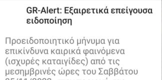 Έκτακτη ειδοποίηση από την Γενική Γραμματεία Πολιτικής Προστασίας λάβαμε πριν από λίγα λεπτά στα κινητά μας τηλέφωνα για την εκδήλωση επικίνδυνων καιρικών φαινομένων από...