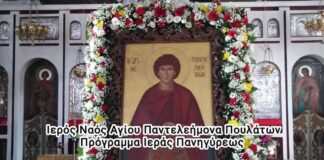 Πρόγραμμα Ιεράς Πανηγύρεως Ι.Ν. Αγίου Παντελεήμονα Πουλάτων